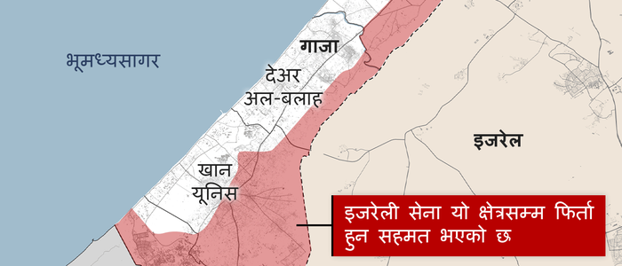 "हमास नियन्त्रण गुमाउन चाहँदैन र इजरायली पक्ष पनि राजनीतिक कारणले गाजामा रहन चाहन्छ किनकि कोही पनि आफ्ना समर्थकहरूलाई आफू किन पछि हट्नुपर्छ भन्ने बताउन चाहँदैन," उनले बीबीसी न्यूजसँग भने।