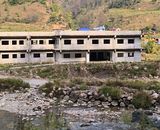 Baglung. A building stands starkly by the bank of Nisikhola. Walls covered in moss. The two-story concrete building has neither been painted nor maintained. The ground floor is covered in weeds. Li...