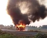 गुडिरहेको म्याजिक भ्यानमा अचानक आगो लाग्दा चालक घाइते, यात्रुले भागेर ज्यान जोगाए