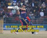 १२ रनमा आउट भएका दक्षिण अफ्रिकी खेलाडी फाफ डुको टीयूमा देखिएको खेल ६ तस्बिरमा ५ मिनेट अघि काठमाडौं : विराटनगर किंग्सबाट नेपाल प्रिमियर लिग खेल्न आएका दक्षिण अफ्रिकाका प्रतिष्ठित अन्तर्राष्ट्रिय क...