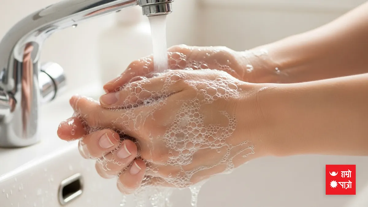 हातमा साबुन हाल्ने, कम्तीमा २० सेकेन्ड साबुन पानीले मिच्ने ।