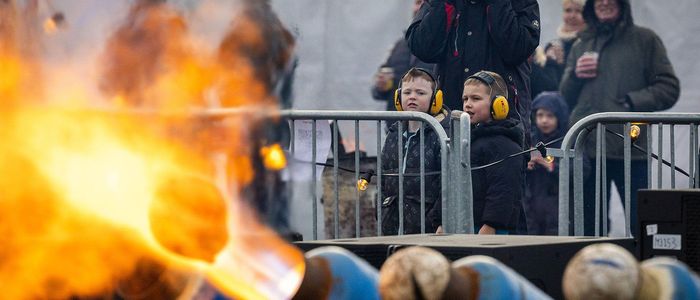 द नेदरल्यान्ड्सको ओम्मेनमा स्थानीय बासिन्दाहरू नयाँवर्षको पूर्वसन्ध्यामा आयोजित 'कार्बाइड शूटिङ' हेर्न भेला भए।