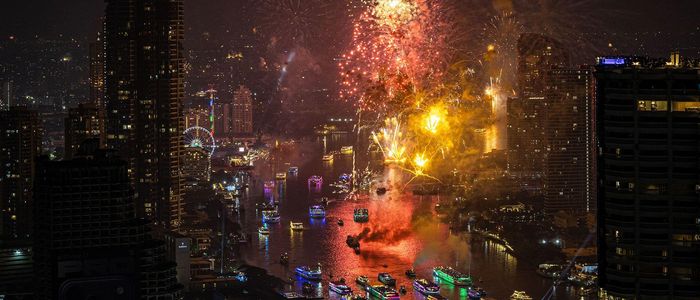 ब्याङ्ककमा नयाँवर्षलाई स्वागत गर्न आयोजित कार्यक्रममा सहभागी हुने चाउ प्राया नदीको तटमा हजारौँ मानिसहरू भेला भए।