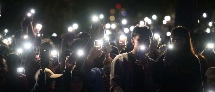 हङ्कङमा दर्शकहरू नयाँवर्षको पूर्वसन्ध्यामा आयोजित विशेष साङ्गीतिक कार्यक्रम र 'लाइट शो'मा सहभागी भए।