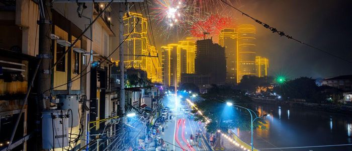 फिलिपिन्सको मनिला महानगरस्थित मकाटीमा विशेष खालको प्रकाशबाट उज्यालो देखिएका अग्ला भवनहरूमाथि रङ्गीन आकृतिहरू बन्ने गरी आतसबाजी गरियो।