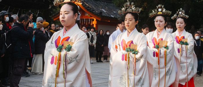 जापानको ओसाकामा युवतीहरू परम्परागत पोसाक किमोनो लगाएर वर्षान्तका अवसरमा सुमियोशी ताइशा मन्दिरमा आयोजित शिन्तो अनुष्ठानमा सहभागी भए।