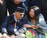 आज पनि एमाले महाधिवेशनस्थल पुगिन् ज्योति, ओलीसँग पलेँटी कसेर सुन्तला खाँदै