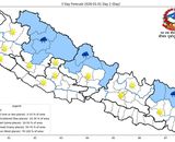 १७ पुस, काठमाडौं । नेपालमा हाल पश्चिमी वायुको आंशिक प्रभाव देखिएको छ । यसको प्रभावले बादल लागेको छ । बादलको प्रभाव पश्चिम नेपालमा बढी र पूर्वी नेपालमा कम देखिएको छ । यसले गर्दा केही चिसो बढ्ने र उ...