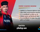 लोकेश बम राष्ट्रिय टोलीका भरपर्दा मध्यक्रमका ब्याट्सम्यान हुन् । टोलीलाई आवश्यक पर्दा उनी विकेटकिपरको भूमिका पनि निर्वाह गर्न सक्छन् । २५ वर्षीय दायाँहाते ब्याट्सम्यान लोकेशले पहिलोपटक टी–२० विश्व...
