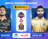 सिद्धार्थ बैंक नेपाल प्रिमियर लिग (एनपिएल) मा आज काठमाडौं गोर्खाज र सुदूरपश्चिम रोयल्स भिड्दै छन्। त्रिवि क्रिकेट मैदान कीर्तिपुरमा अपराह्न ४ बजे काठमाडौं र सुदूरपश्चिम आमनेसामने हुन लागेका हुन्।