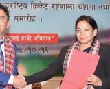 काठमाडौँ । तत्कालीन नेकपाको सरकारका प्रधानमन्त्री केपी शर्मा ओलीलाई साक्षी राखेर गरिएको चितवनको गौतम बुद्ध अन्तर्राष्ट्रिय क्रिकेट रंगशाला सम्झौताले कलाकार तथा धुर्मुस–सुन्तली फाउन्डेसनका अध्यक्ष स...